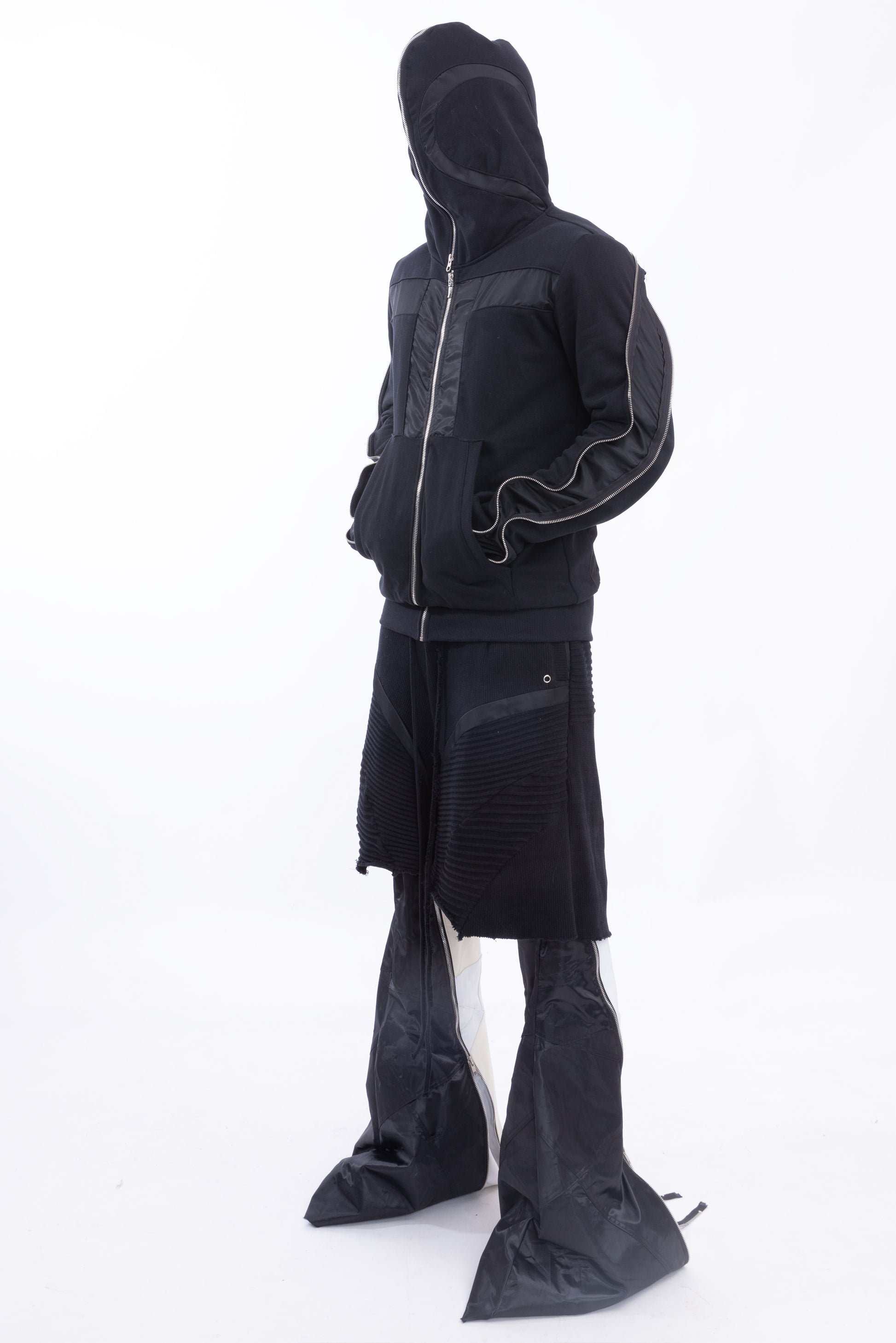 - Two zippers through both the sleeves from the back