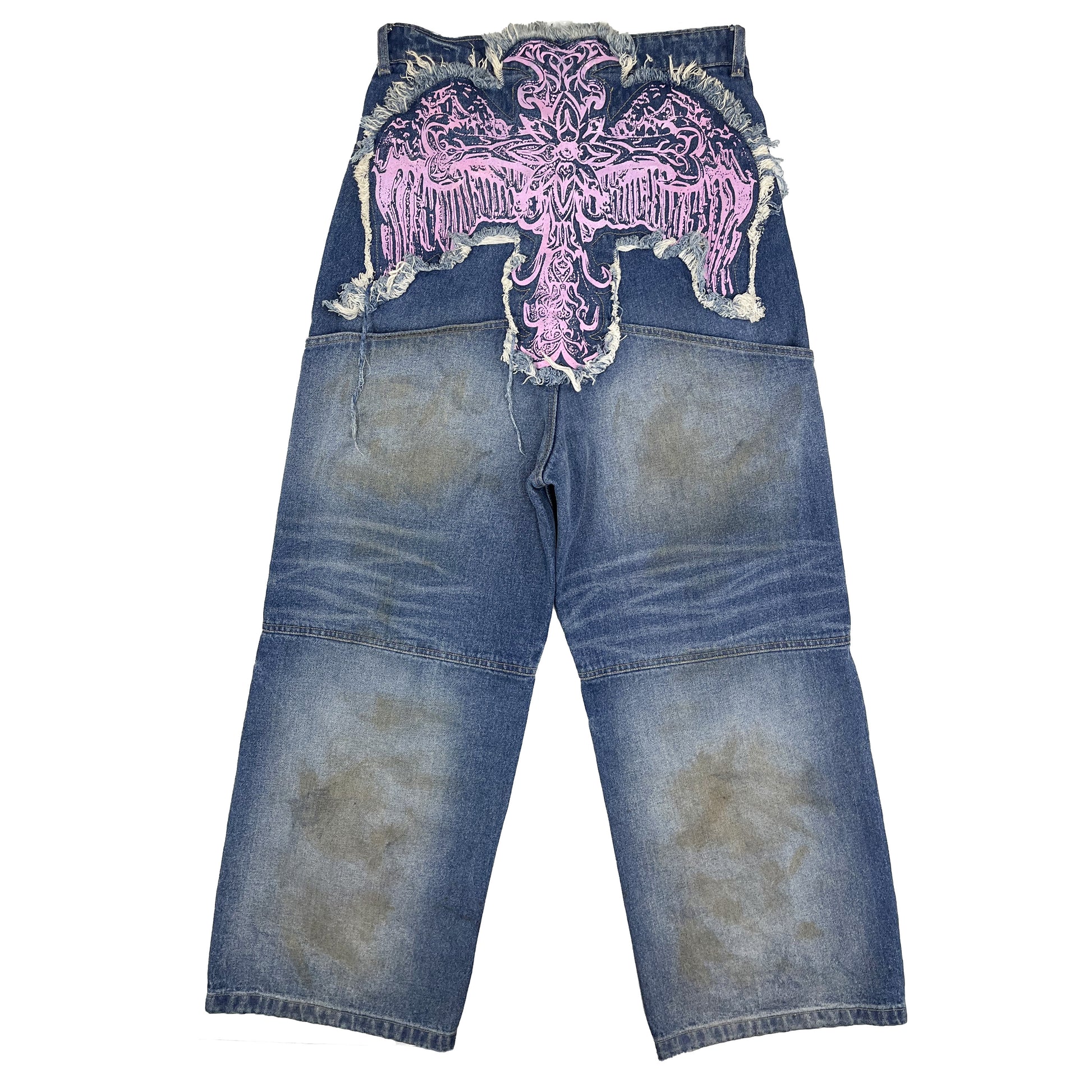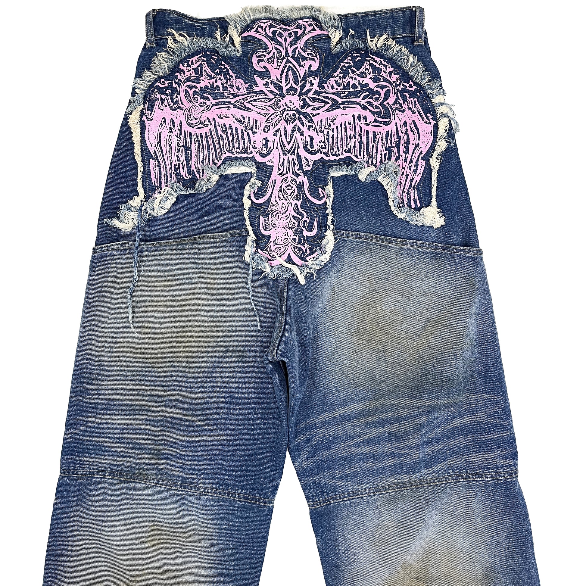 CROSS LOGO PATCHED LOW CROTCH JEANS - DIRTY LIGHT BLUE