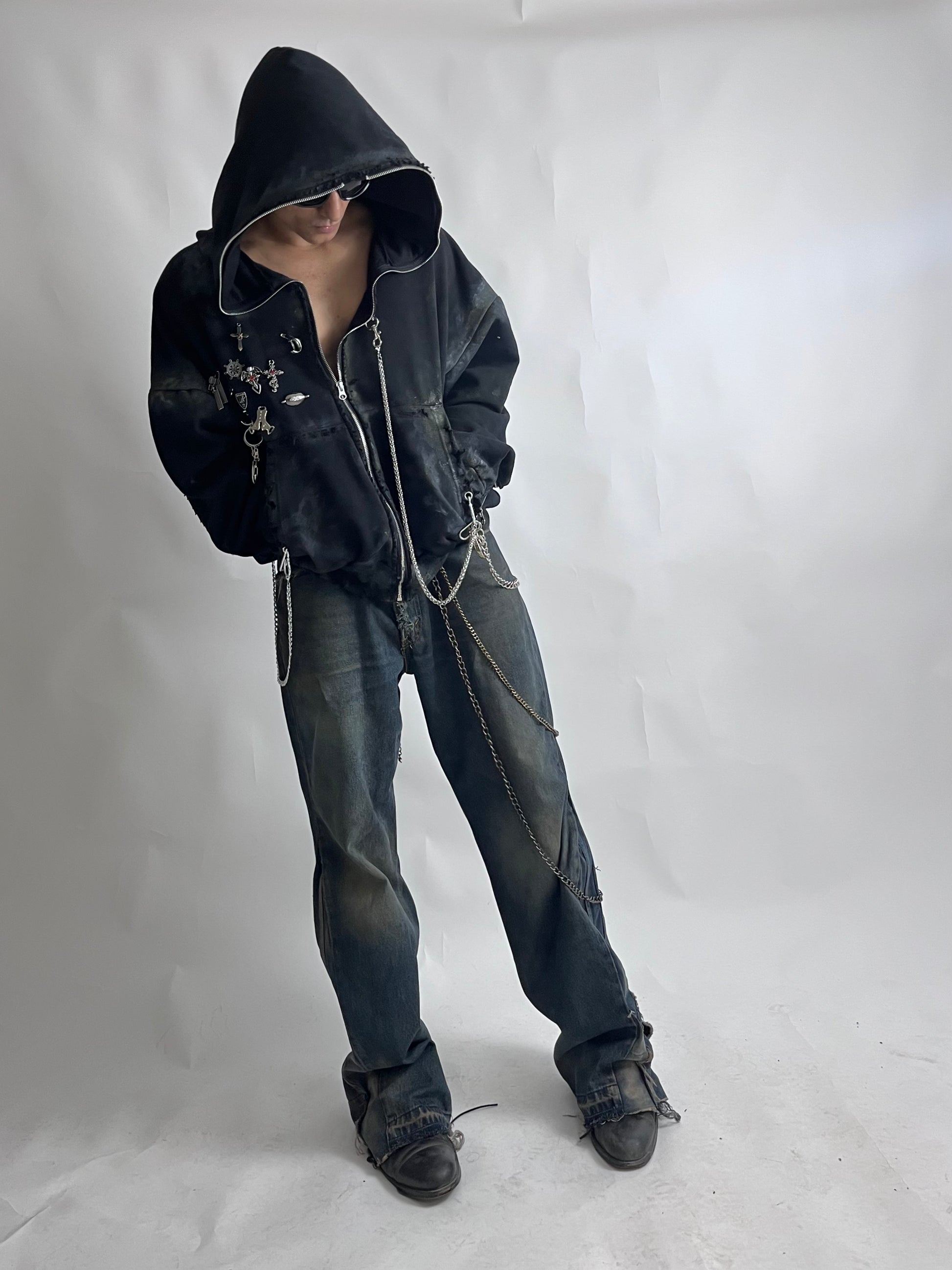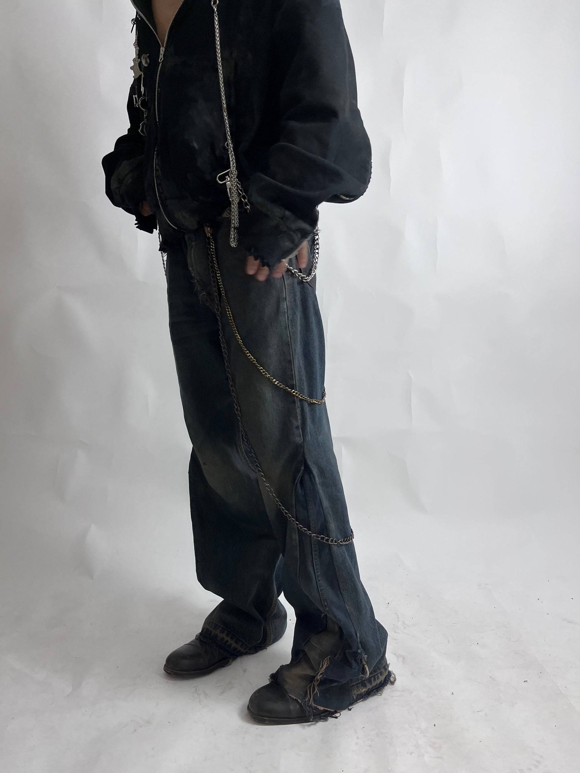 Levis jeans given the wash effects with hands + hand dyed to achieve the dirty look.